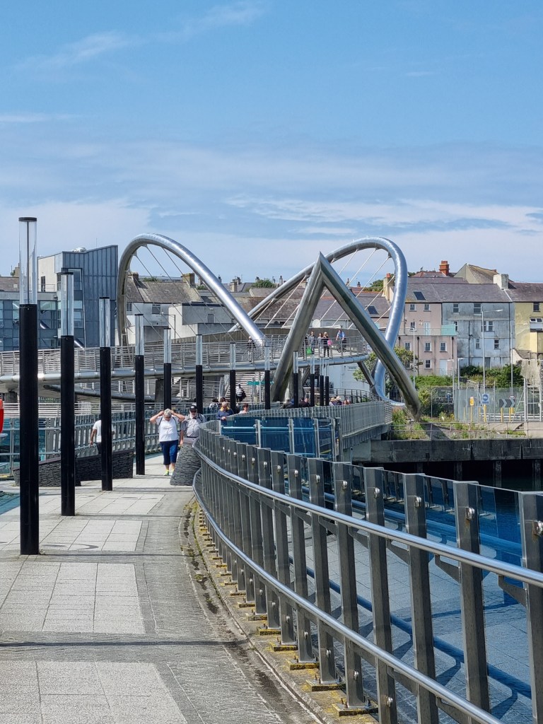 The shuttle bus dropped us at the train/ferry station. After checking the timetable we headed over the Celtic bridge and into the town.