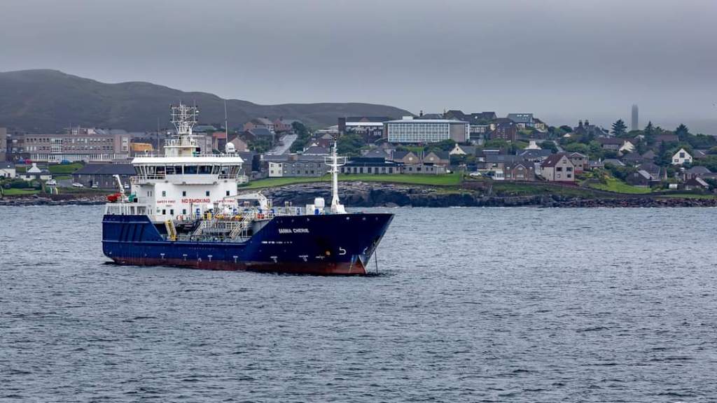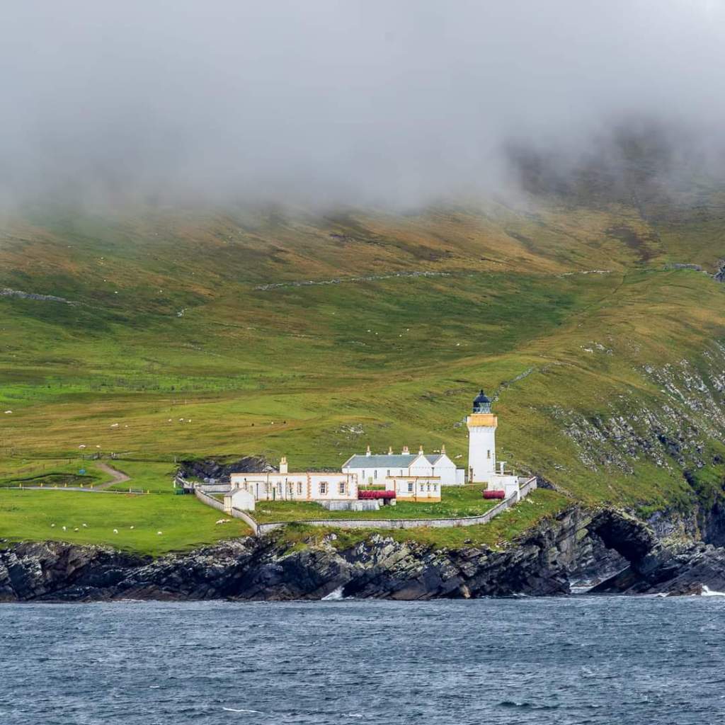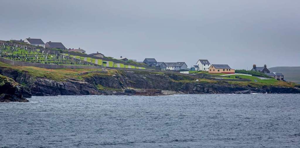Unfortunately, yesterday’s good weather did not last. After dropping anchor at about 7am, the captain regretfully made the decision that the weather was too unfavourable to launch the shuttles. The anchor was quickly raised and we were on our way again. This is as close as we got to seeing Lerwick!