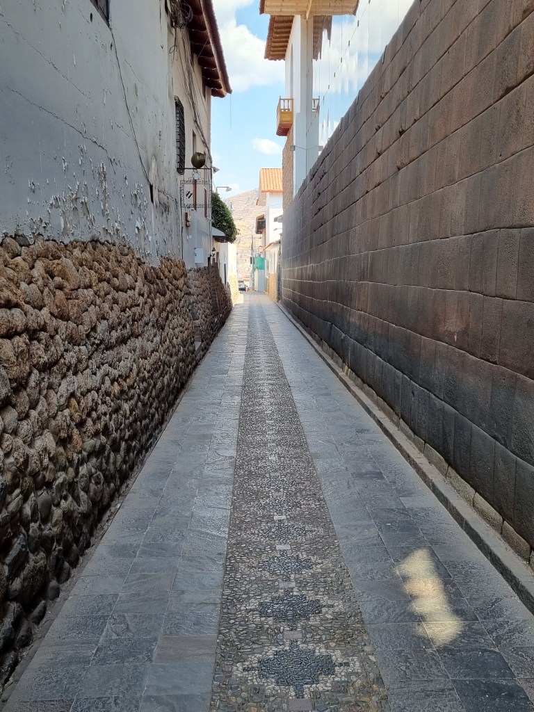 Corikancha had been one of the most important Inka temples but had been plundered and dismantled by the Spanish who then used the remaining foundation of Inka layed stones to build another church on. There are many examples of colonial buildings built on top of Inka stone work in Cusco.
